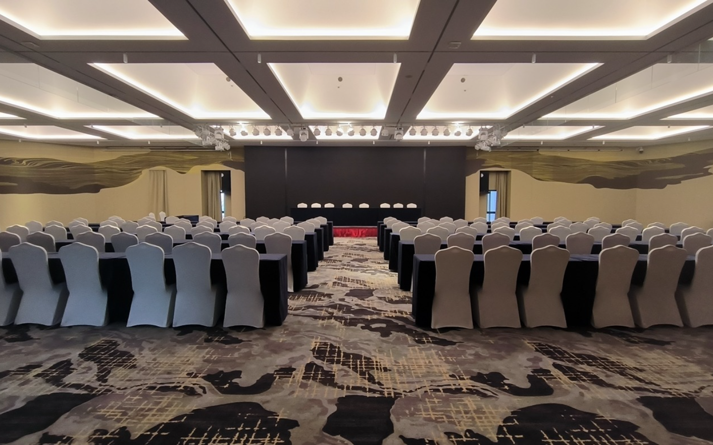 延年城际酒店 3楼延玺厅 厅长18米,宽39.5米,高4米 舞台宽12米,高0.4米,进深3.3米,舞台上高3.6米 迎宾区4.5米宽,3米高 餐标2499起,适宜摆桌30桌左右